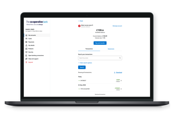 The Co-operative Bank account gives you more options for managing your account. You can visit our branches, contact us by telephone or manage your account on the go, through online and mobile banking. You’ll also receive statements of all transactions, with the option of choosing to have paperless statements, with digital access 24 hours a day, 7 days a week.
